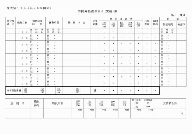 第13条 職員は、始業時刻までに出勤するとともに、出勤し、及び退庁したときは、自ら自動式時間記録機により出勤時間及び退庁時間を記録しなければならない。