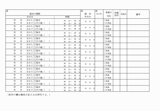 2 職員は、執務時間中に外出しようとするときは、上司の承認を受けるものとする。一時離席しようとする場合においても、その旨を上司に届け出るなど常に自己の所在を明らかにしておくよう心掛けなければならない。