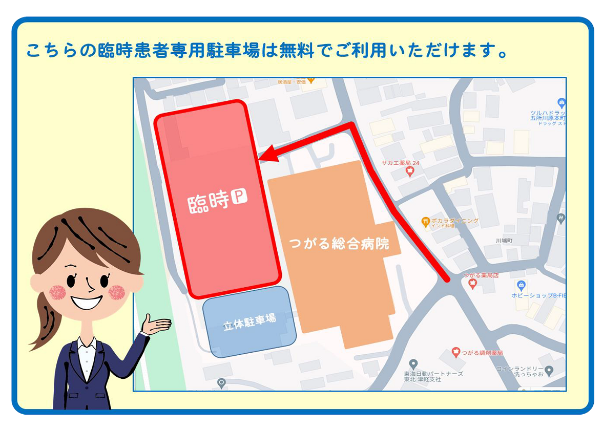 また、今後、当院では五所川原市役所旧庁舎跡地を駐車場として整備する予定ですので、現状へのご理解・ご協力を重ねてお願いいたします。